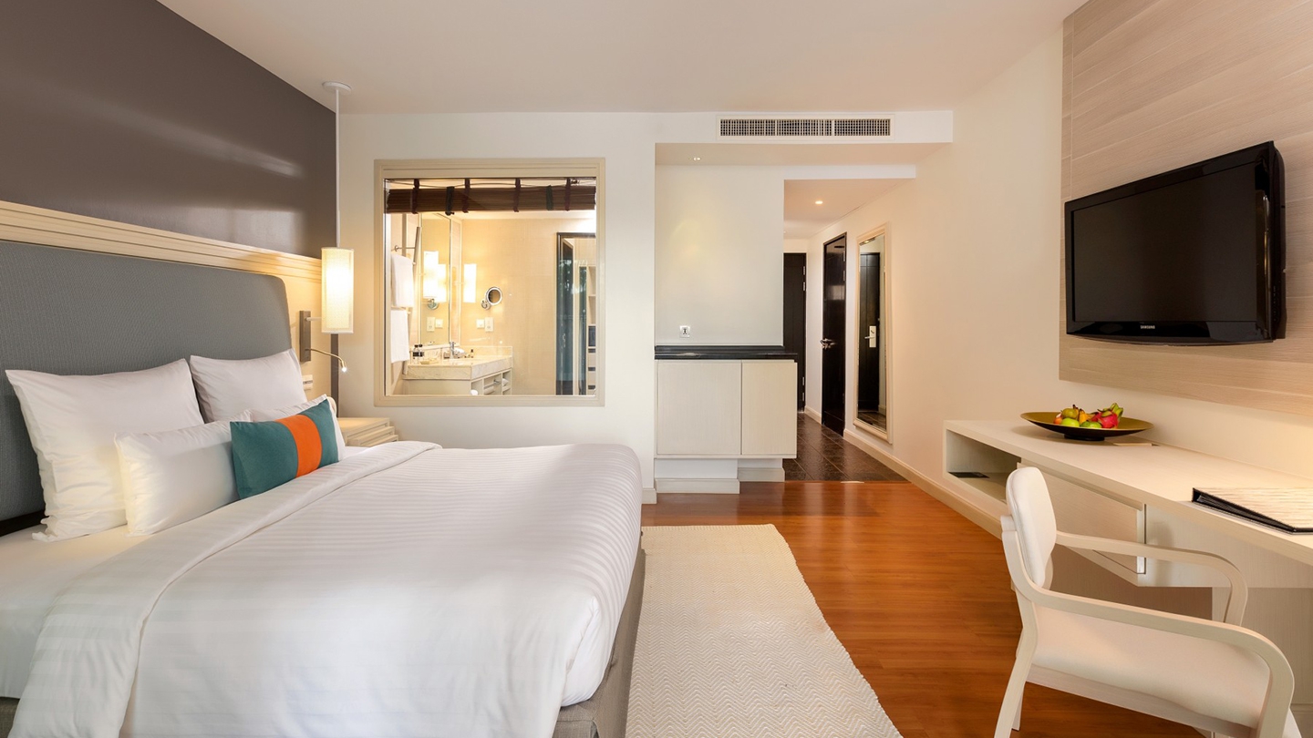 Relax and recharge at the Pullman Phuket Panwa Beach Resort, a 5-star luxury resort located on the beach in Cape Panwa, offering sweeping views of the Andaman Sea. With its beachfront location, beachfront dining, and complimentary beach cabanas, this resort is the perfect place to soak up some sun. Enjoy your deluxe room with a terrace, A/C, Wifi, and daily breakfast. Treat yourself to a massage, aromatherapy, or a manicure/pedicure at Talay Spa, the onsite spa. Experience a genuinely ethical elephant encounter, the only one in Thailand recommended as ethical by National Geographic.
